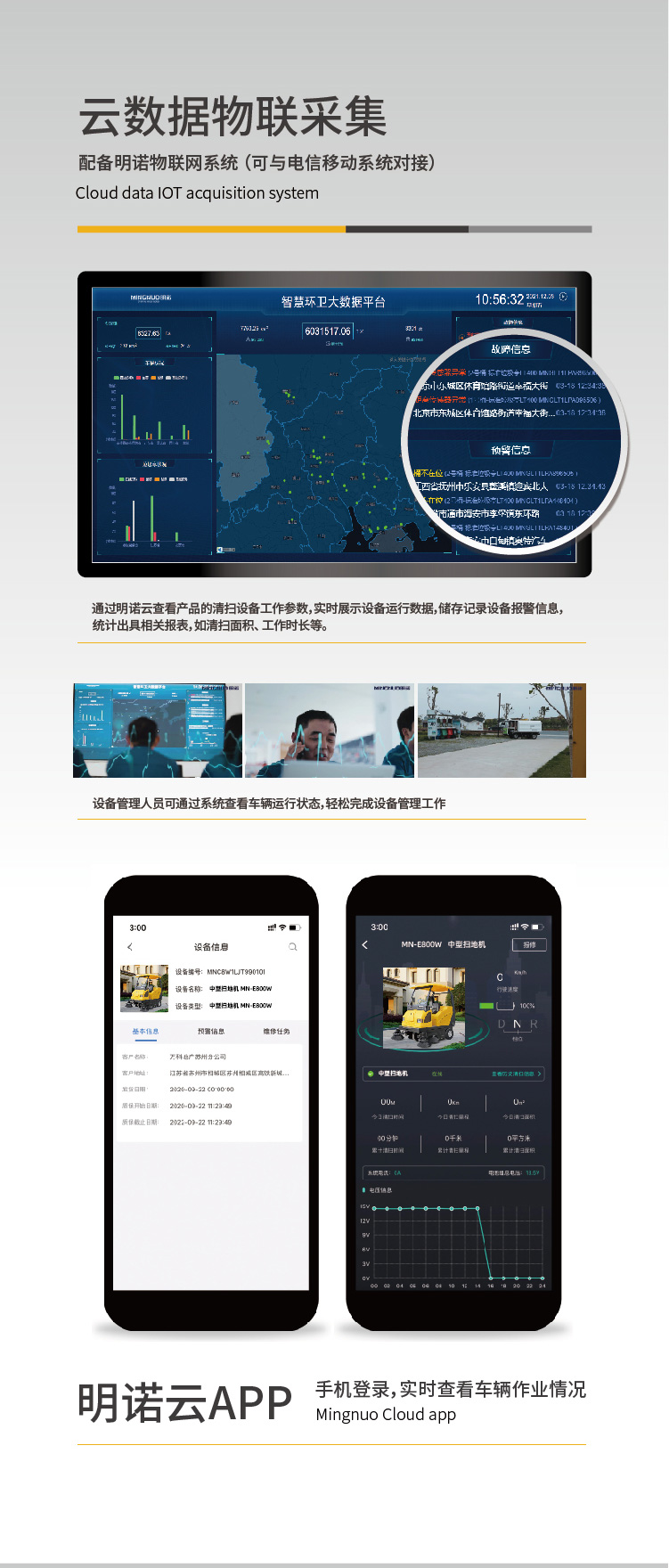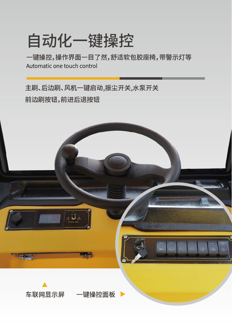 MN-E800W是一款中型麻豆一二三产区驾驶式扫地机,为吸尘、扫地、喷水相结合的自动清洁一体机。加大车轮,通过性高,适用于公园、环卫、物业保洁、广场、高校的室外清扫。 工作效率12000平方每小时