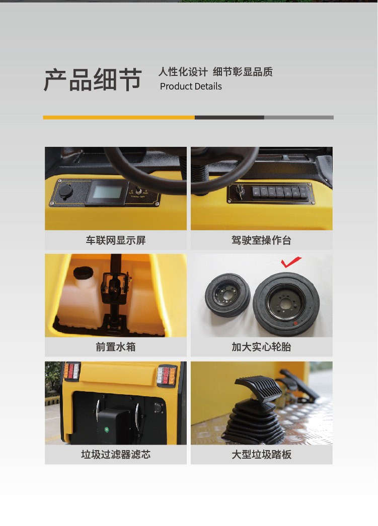 l 加大底盘设计,工作效率高,实心加大轮胎,轻松过减速带,整车通过性好。