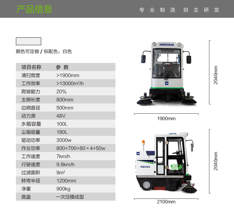 11作业功率(主刷+风机+边刷+振尘)w800+700+80×4+50